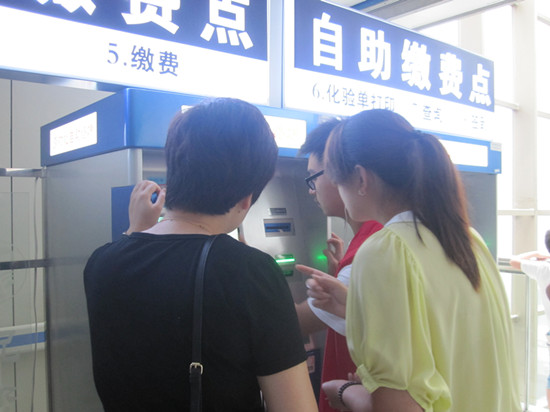 由于周末医院不开设门诊,人流量也较少,因而不同于平常工作日轮椅护送、导医咨询等体力活,队员们被安排到幸福志愿站和急诊导医处开始相对轻松的工作。炎炎夏日,骄阳似火。幸福志愿站位于室外,站内近期又因工程维修而断电,队员们坐在里面“汗如雨下”。条件艰苦如此,可大家从未有过丝毫懈怠,仍旧坚守岗位积极为来往的人群解决些力所能及的问题例如手机充电,伞的借还,路的指引等等,对于那些无法解答的问题则记录于纸上交由医院内部资深人士解决。急诊导医处队员的工作大致相同,主要负责路的指引和一些疑难问题的回答。在休息交流时大家纷纷表示人们的一声谢谢使他们觉得自己的付出被认可而倍感此次实践意义重大。