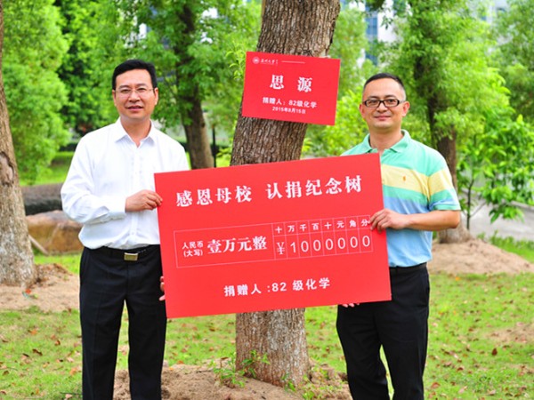 赠送一幅名为“桃李满园”的花卉国画,并向“化材之光”基金会捐款10000元,以表达对母校发展壮大、学子茁壮成长的殷切期望。